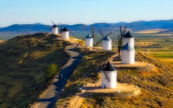 - Mañana: Desayuno en el hotel. Salimos en autobús hacia los alrededores de Toledo, donde visitaremos pueblos pintorescos como Consuegra, conocido por sus molinos de viento y el castillo.